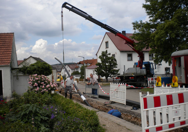 Baustart war am 06. Juni 2011. Das Nahwärmenetz war am 15. November 2011 fertig. Die Montage der Wärmeübergabestationen sowie der Bau der neuen Heizzentrale, wird im Dezember 2011 abgeschlossen sein. Termin für die Inbetriebnahme ist der 22./23. Dezember 2011.